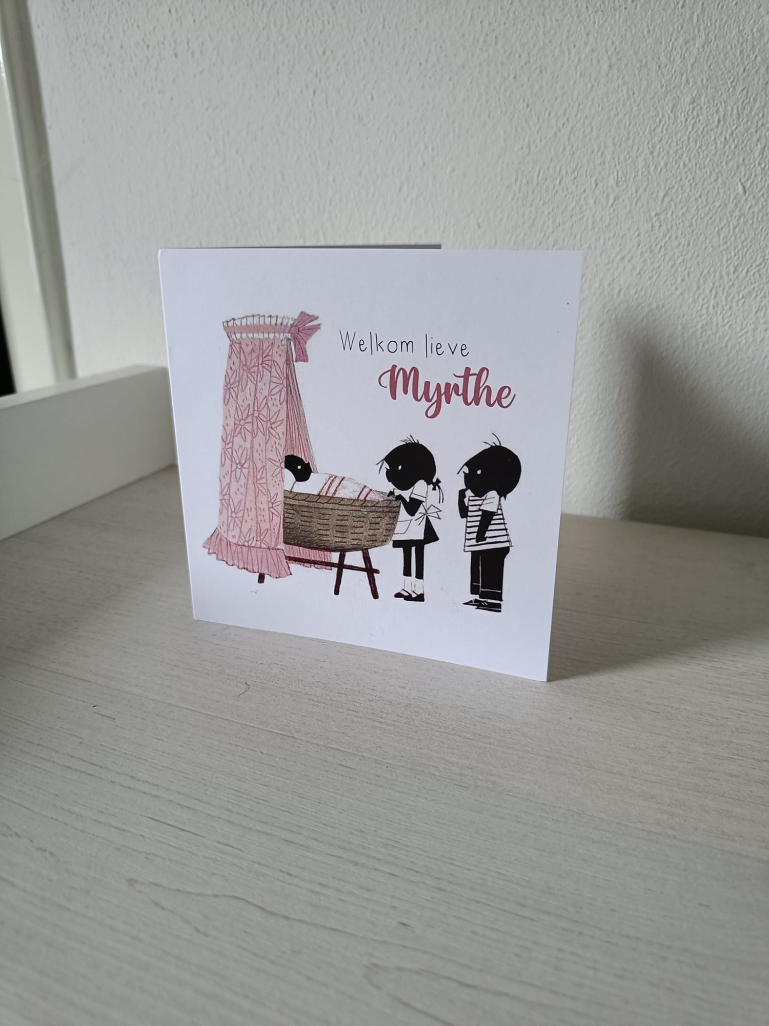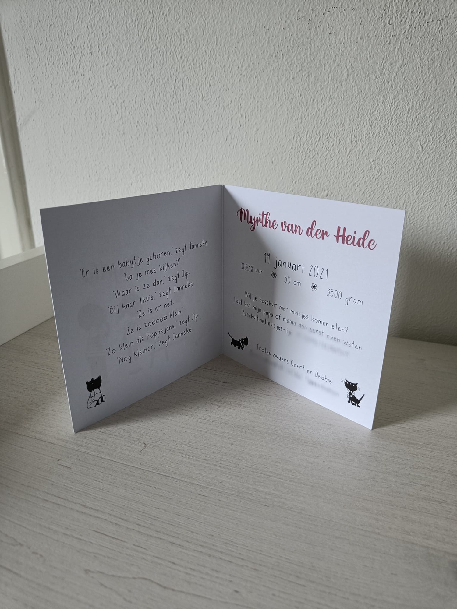 Met een gedichtje van zijn grote zus en alle informatie aan de binnenkant.
