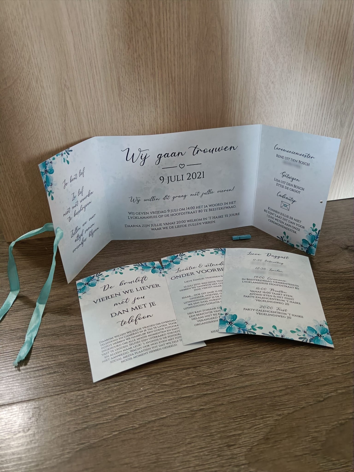 Trouwkaart met een aparte kaart voor de dag gasten