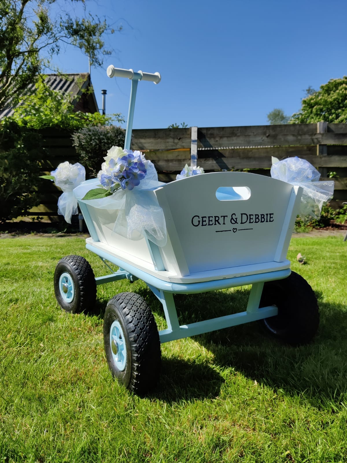Voor onze kleine meid toverde ik een gewone bolderkar om tot een magisch karretje, helemaal in stijl. Ze bracht de ringen naar voren.