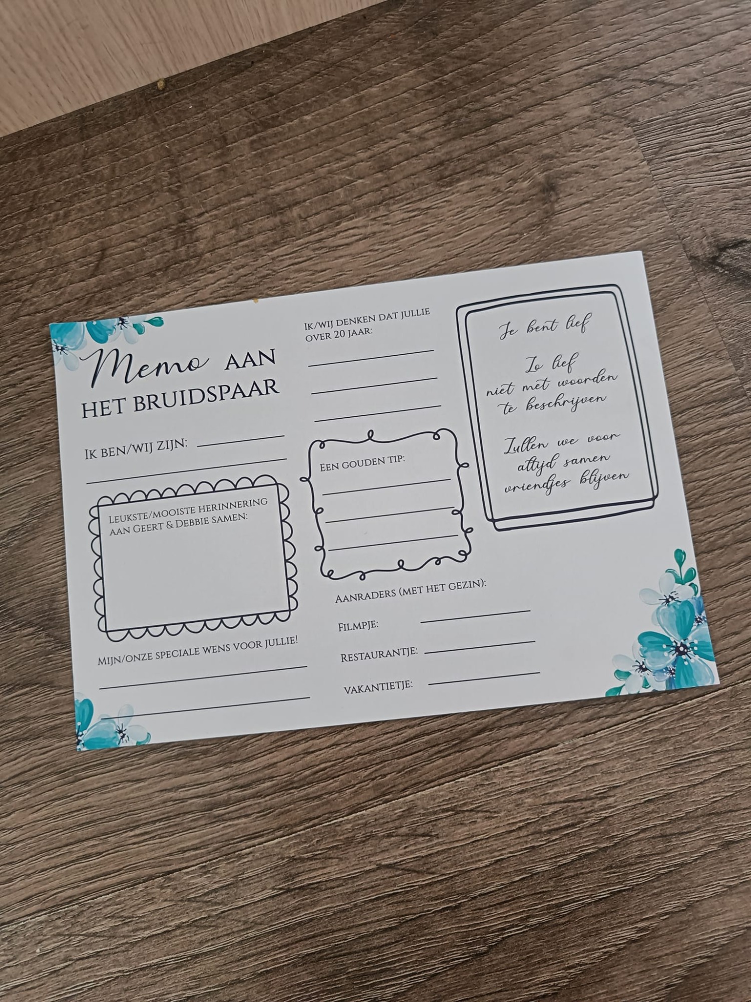 Memo voor het bruidspaar