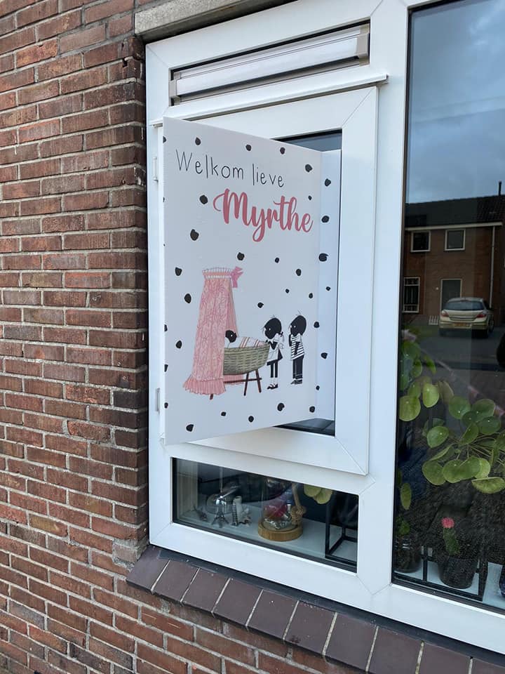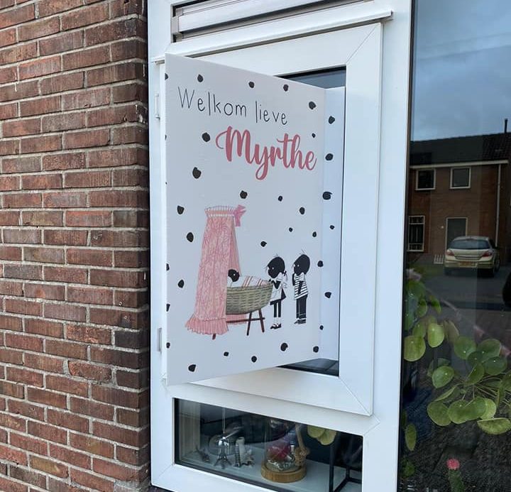 Geboorte/verkoopbord voor op het raam.