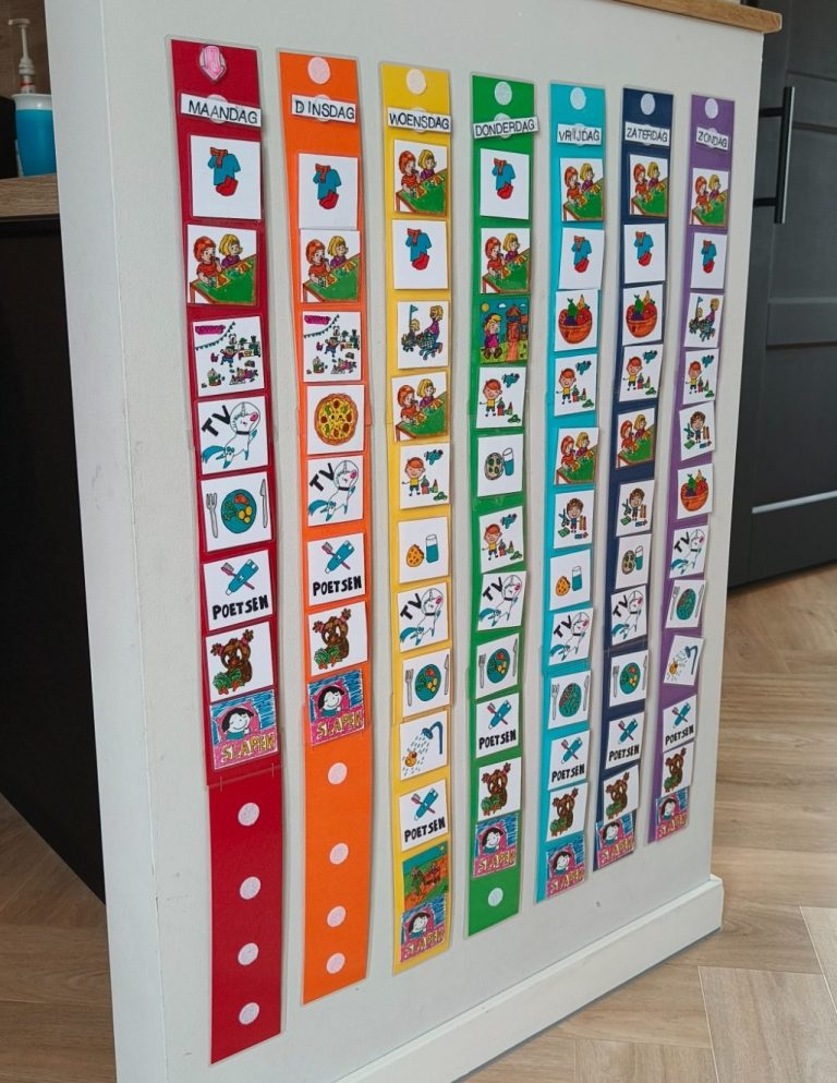 Ik heb een dagritmeplanning gemaakt om structuur te brengen op een speelse en visuele manier. Met mijn eigen getekende illustraties en duidelijke stappen zie je precies wat er staat te gebeuren: van opstaan en aankleden tot spelen en naar bed gaan. Zo weten ze wat er komt en wordt de dagelijkse routine een stuk duidelijker en rustiger.