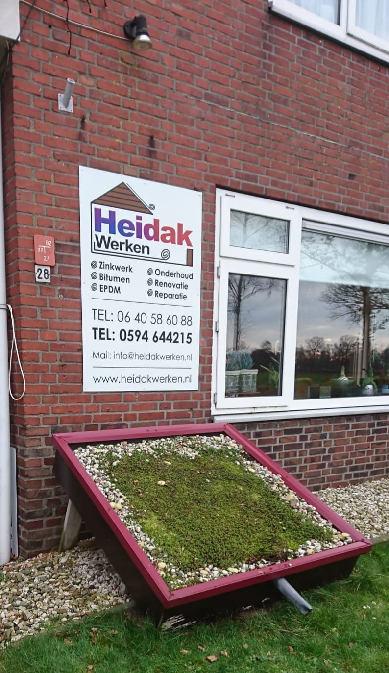 Voor Heidakwerken heb ik ook een gevelbord mogen ontwerpen. Het ontwerp sluit perfect aan bij het vernieuwde logo en zorgt voor een professionele uitstraling op locatie.