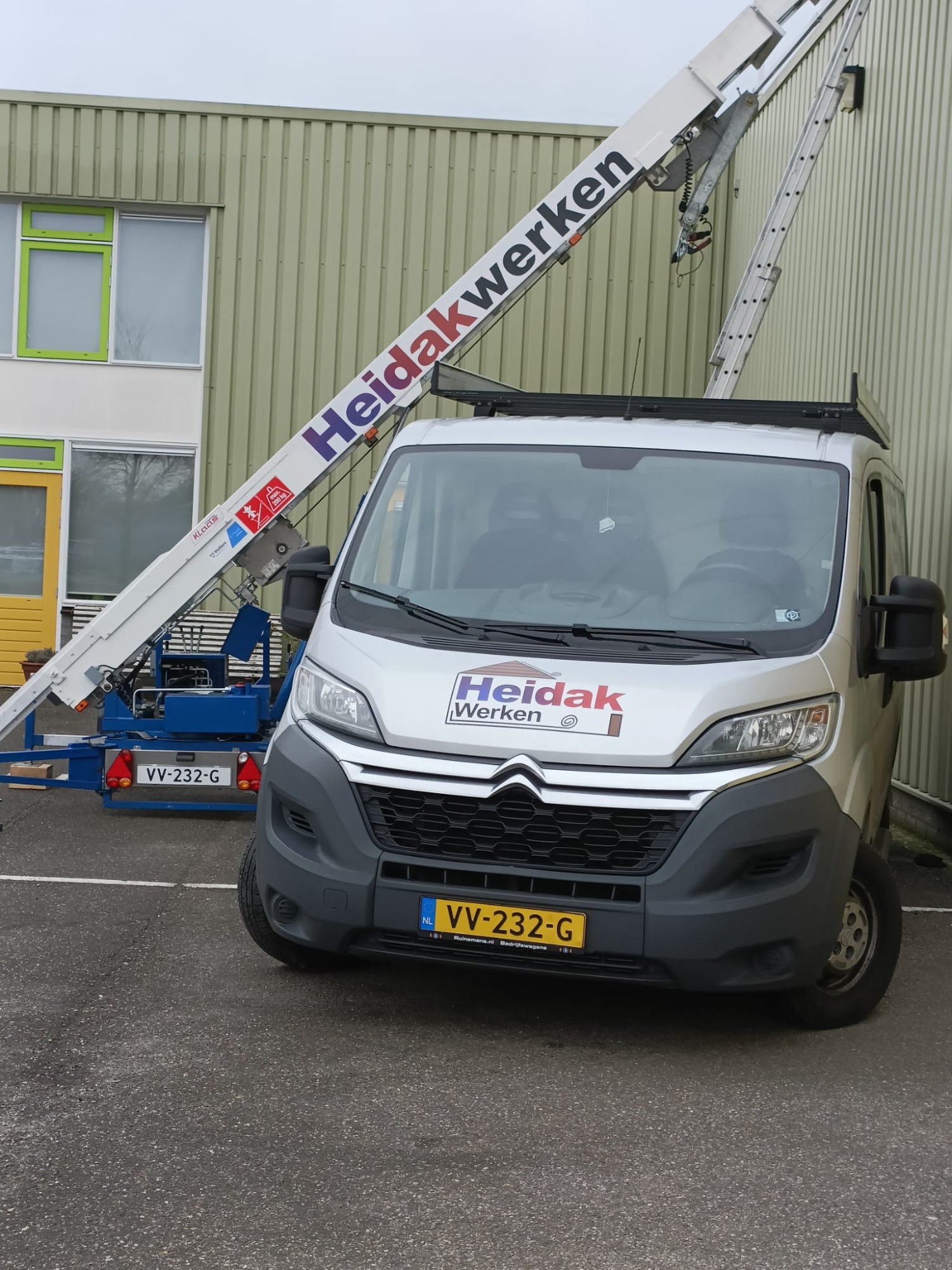 Voor een dakdekkersbedrijf heb ik het logo in een nieuw, modern jasje gestoken. Daarnaast heb ik de belettering digitaal opgemaakt en drukklaar aangeleverd, zodat de bestickeraar direct aan de slag kon met het beplakken van de bedrijfswagen en lift.